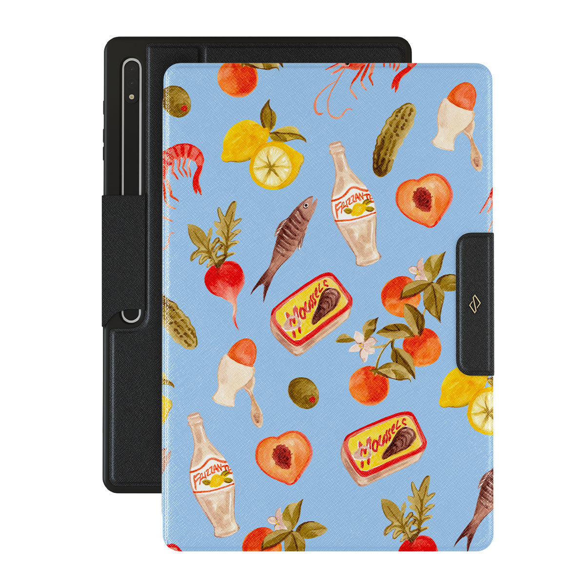 Dieses Design enthält: Flusskrebse, Zitrusfrüchte, Picknick, Zitrone, Ei, Essiggurken, frisches Grün, Strandelemente, Pfirsich, Blume, Olive.