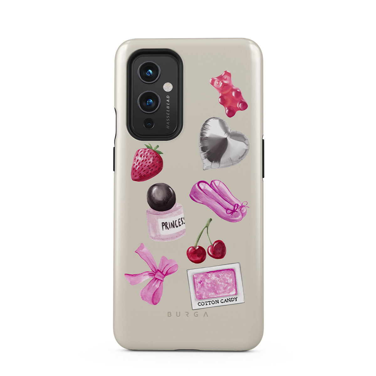 Dieses Design enthält: pinke Schleife, herzförmiger silberner Ballon, Parfümflasche, Erdbeere, Kirschen, pinke Ballettschuhe, Zuckerwatte-Sticker, pinker Gummibär.