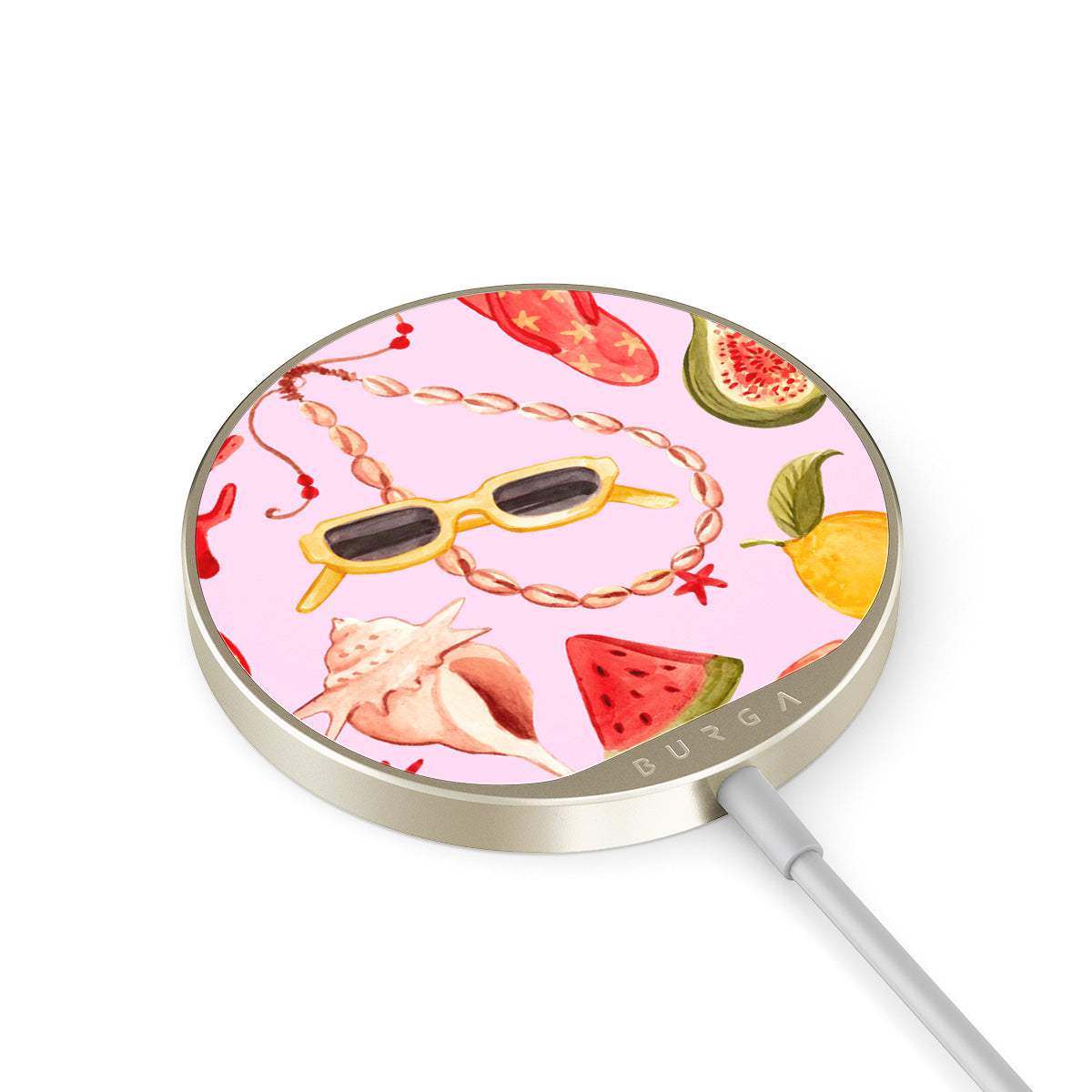 Das integrierte 1,5 Meter Kabel macht es einfach, überall zu laden – im Büro, auf dem Sofa oder in der Airport Lounge. Außerdem bekommst du mit der BURGA Glasrückseite über 500 Prints zur Auswahl, sodass dein Ladegerät genauso stylisch aussieht wie deine Hülle.