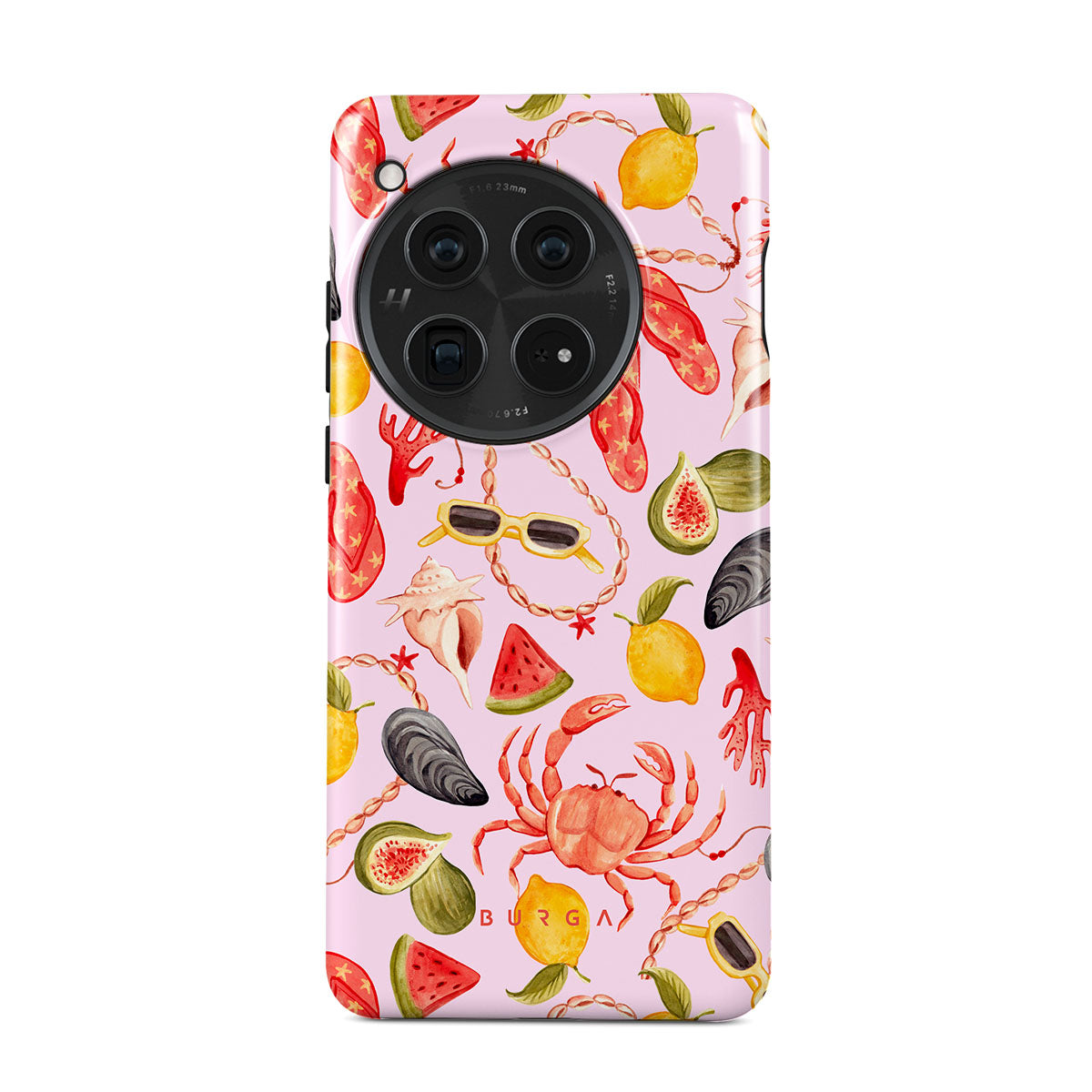Dieses Design enthält: Wassermelone, Sonnenbrillen, Meeresfrüchte, Krabbe, Flip-Flops, Austern, Zitrone, lebendige Farben, tropisches Thema