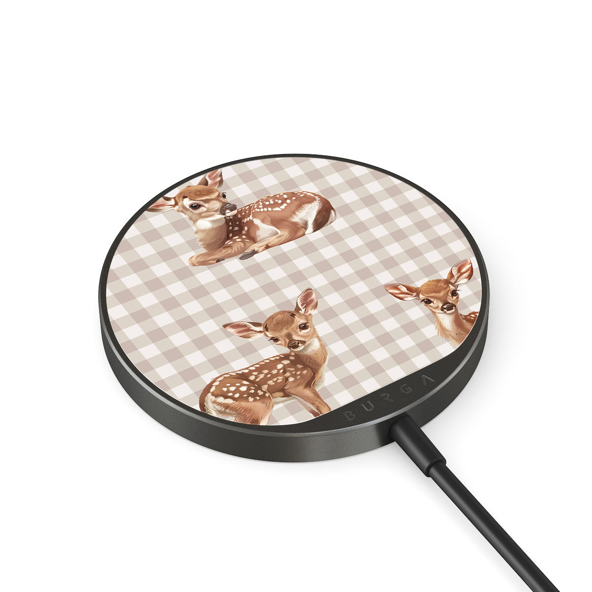 Das integrierte 1,5 Meter Kabel macht es einfach, überall zu laden – im Büro, auf dem Sofa oder in der Airport Lounge. Außerdem bekommst du mit der BURGA Glasrückseite über 500 Prints zur Auswahl, sodass dein Ladegerät genauso stylisch aussieht wie deine Hülle.