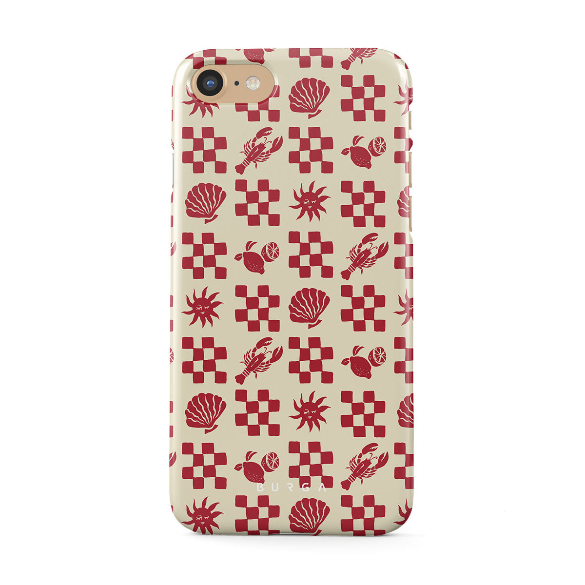 Dieses Design enthält: rot karierte Muster, Muscheln, Hummer, italienische Motive.