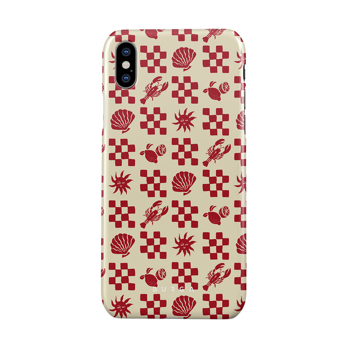 Dieses Design enthält: rot karierte Muster, Muscheln, Hummer, italienische Motive.