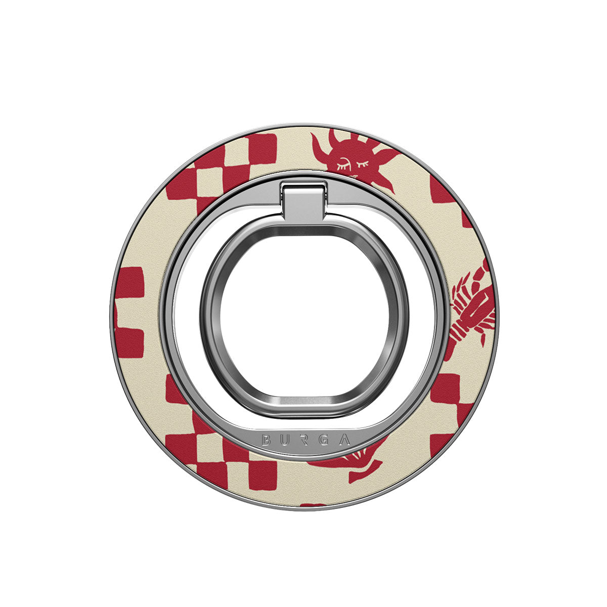 Dieser magnetische Ringhalter rastet mit einem satten Klick ein – ganz ohne Kleber oder Aufwand. Verwende ihn als Griff für entspanntes Scrollen, als Stand für freihändiges Streamen oder als Statement-Piece, das perfekt zu deiner BURGA-Hülle passt.