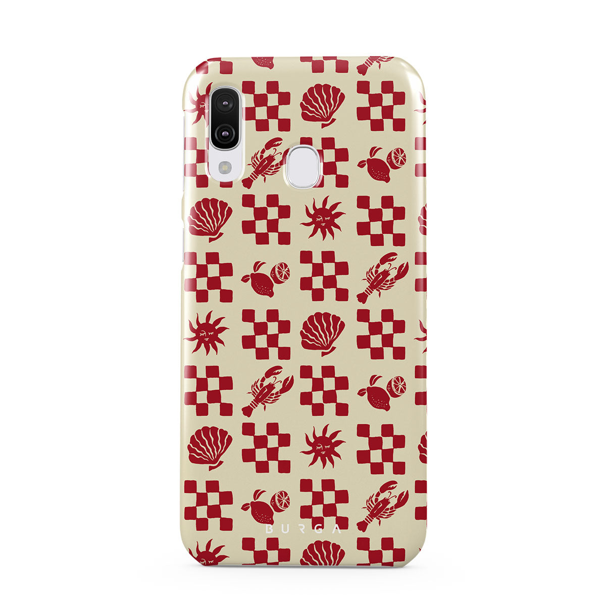 Dieses Design enthält: rot karierte Muster, Muscheln, Hummer, italienische Motive.
