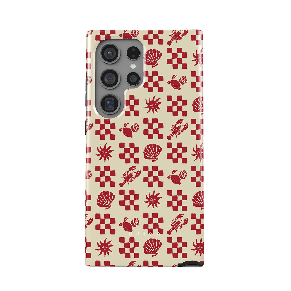 Dieses Design enthält: rot karierte Muster, Muscheln, Hummer, italienische Motive.