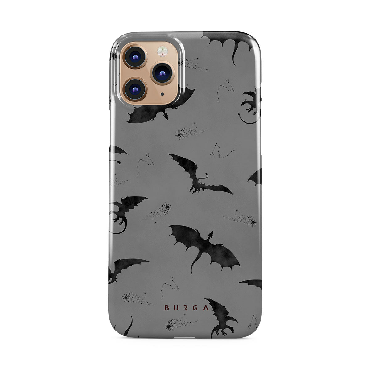 Dieses Design zeigt: Fledermäuse, Drachen, grauer Himmel, Nachthimmel, Schattenkreaturen.
