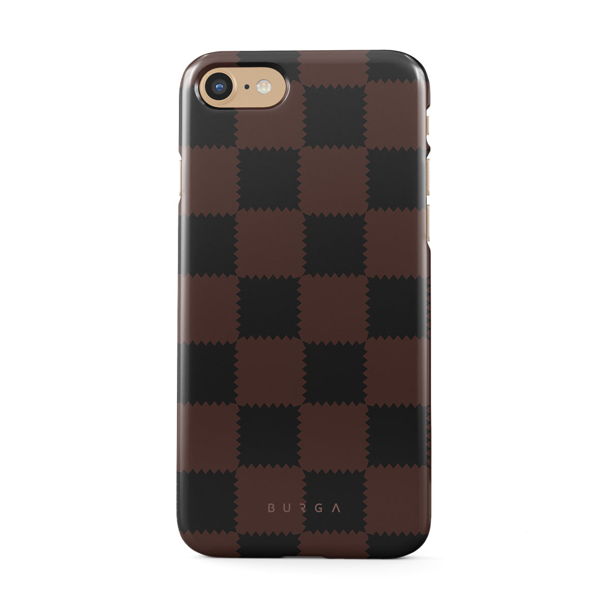 Dieses Design enthält: Schachbrettmuster, Braun und dunkle Töne, geometrisch