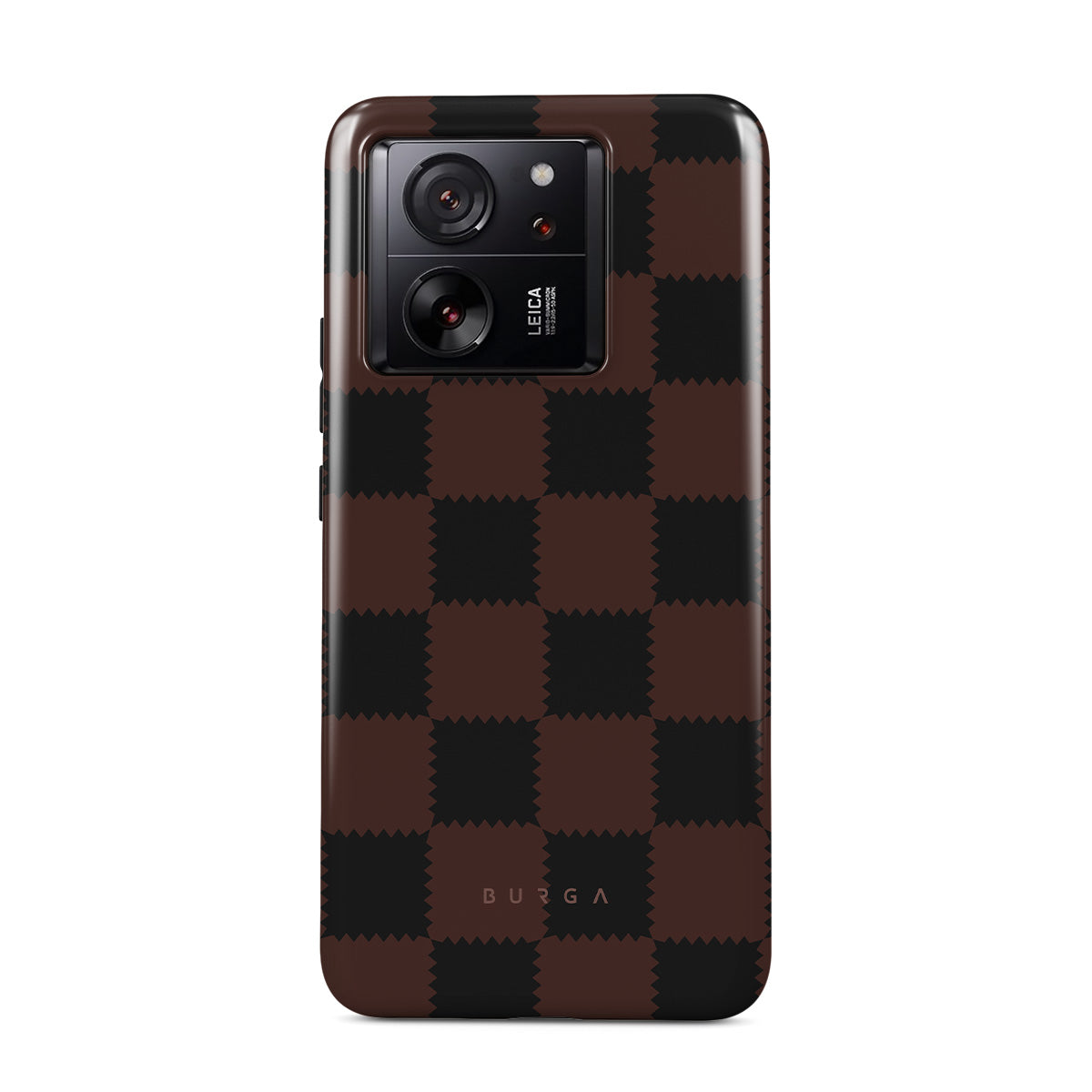 Dieses Design enthält: Schachbrettmuster, Braun und dunkle Töne, geometrisch