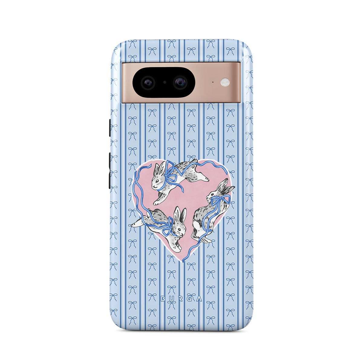 Dieses Design enthält: weiße Kaninchen, Herzrahmen, blaue Streifen