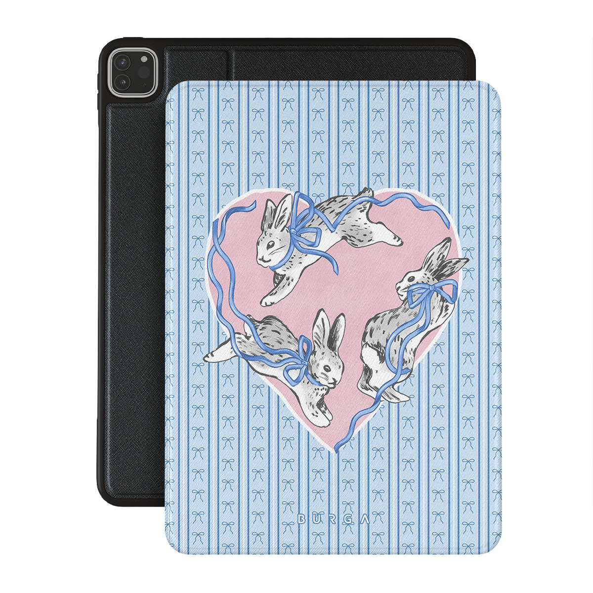 Dieses Design enthält: weiße Kaninchen, Herzrahmen, blaue Streifen