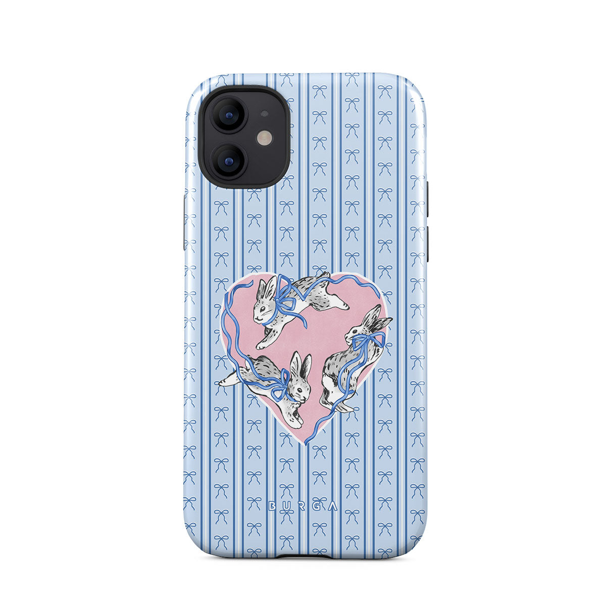 Dieses Design enthält: weiße Kaninchen, Herzrahmen, blaue Streifen