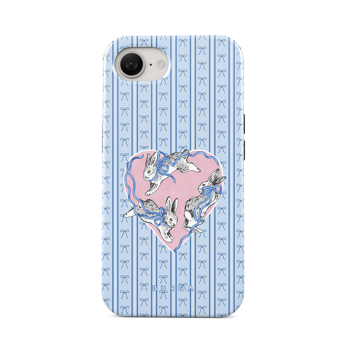 Dieses Design enthält: weiße Kaninchen, Herzrahmen, blaue Streifen
