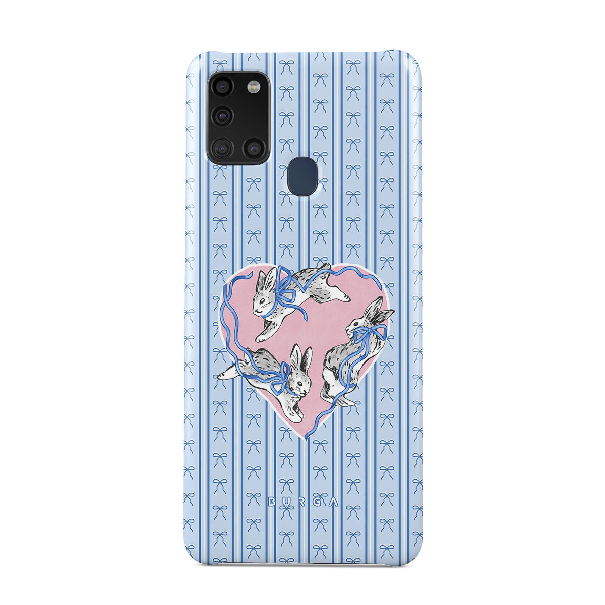 Dieses Design enthält: weiße Kaninchen, Herzrahmen, blaue Streifen