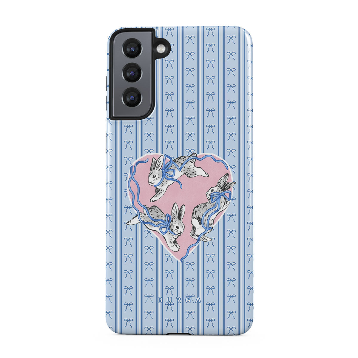Dieses Design enthält: weiße Kaninchen, Herzrahmen, blaue Streifen