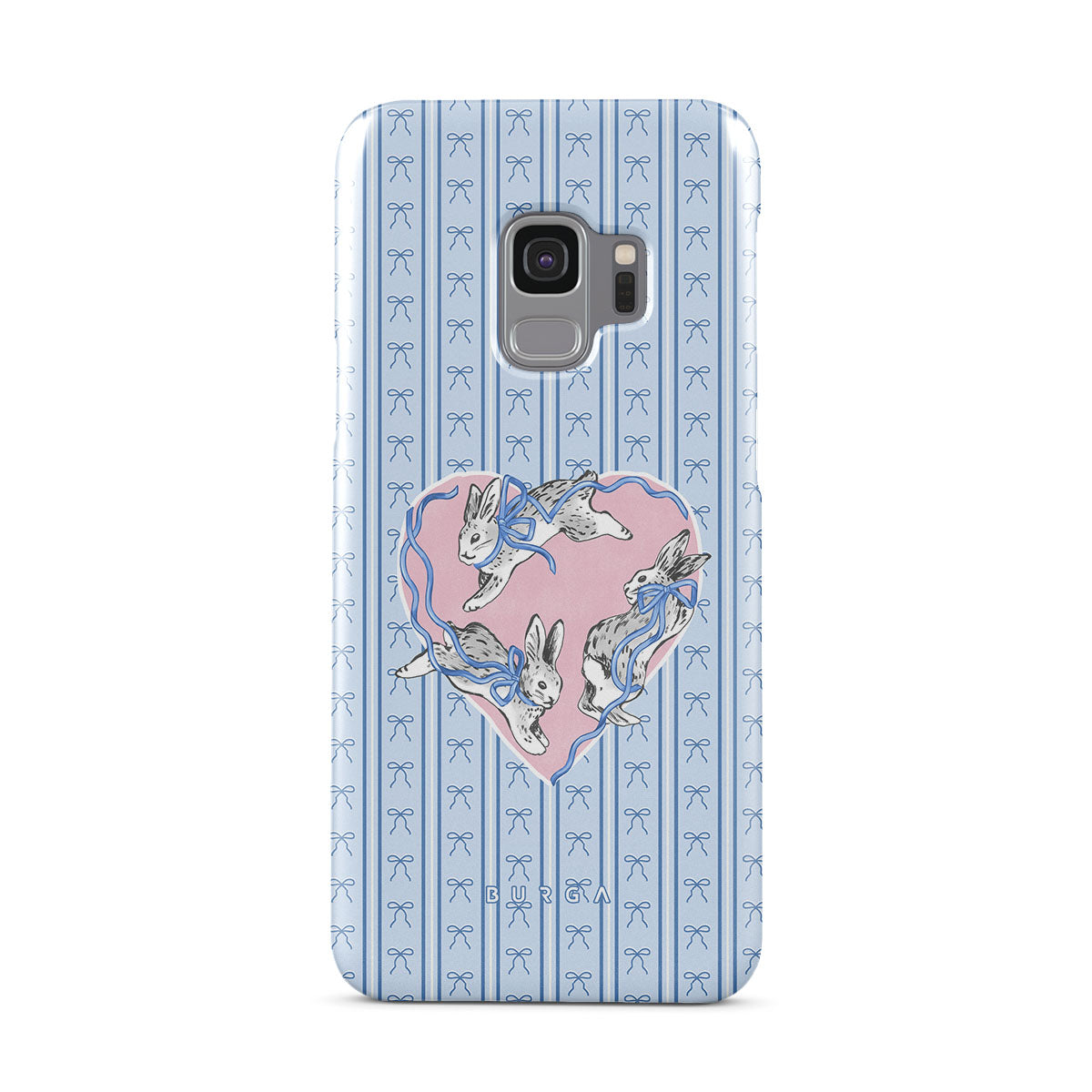 Dieses Design enthält: weiße Kaninchen, Herzrahmen, blaue Streifen