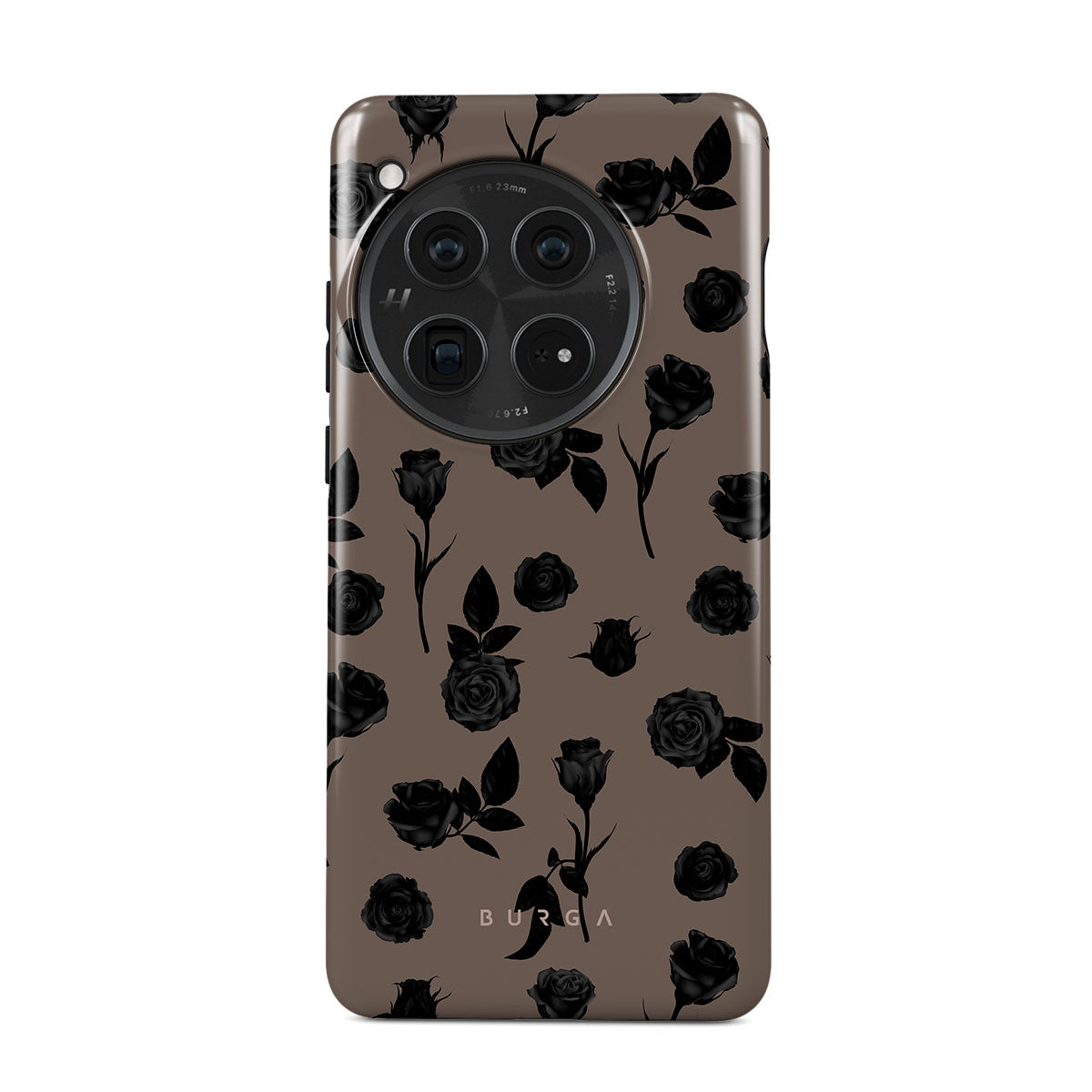 Dieses Design enthält: schwarze Rosen, erdige Töne, florale Details, dunkle Blumen.