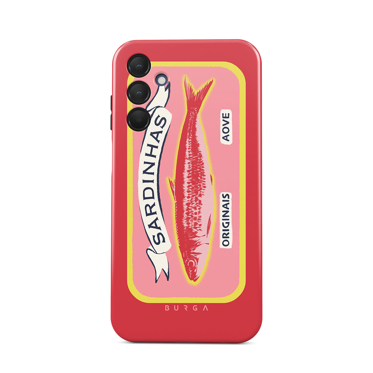 Dieses Design enthält: Retro-Dose, Sardinen, Vintage-Mediterranelemente, elegante Schriftarten, Pastellfarben.