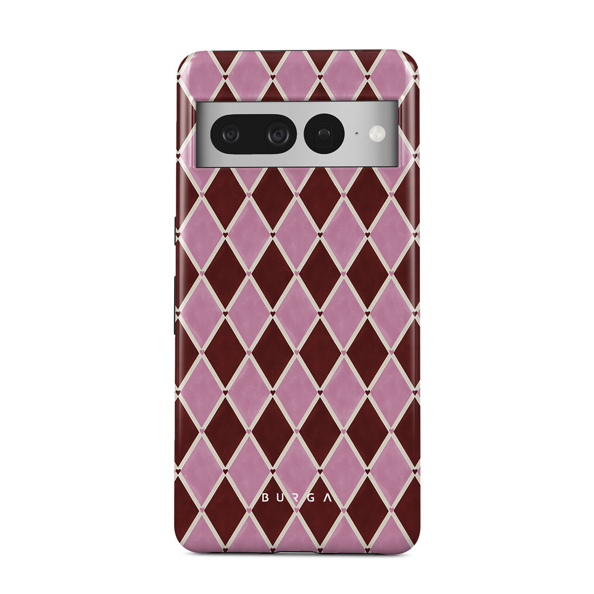 Dieses Design enthält: Harlekinmuster, rosa Rauten, tiefroter Hintergrund