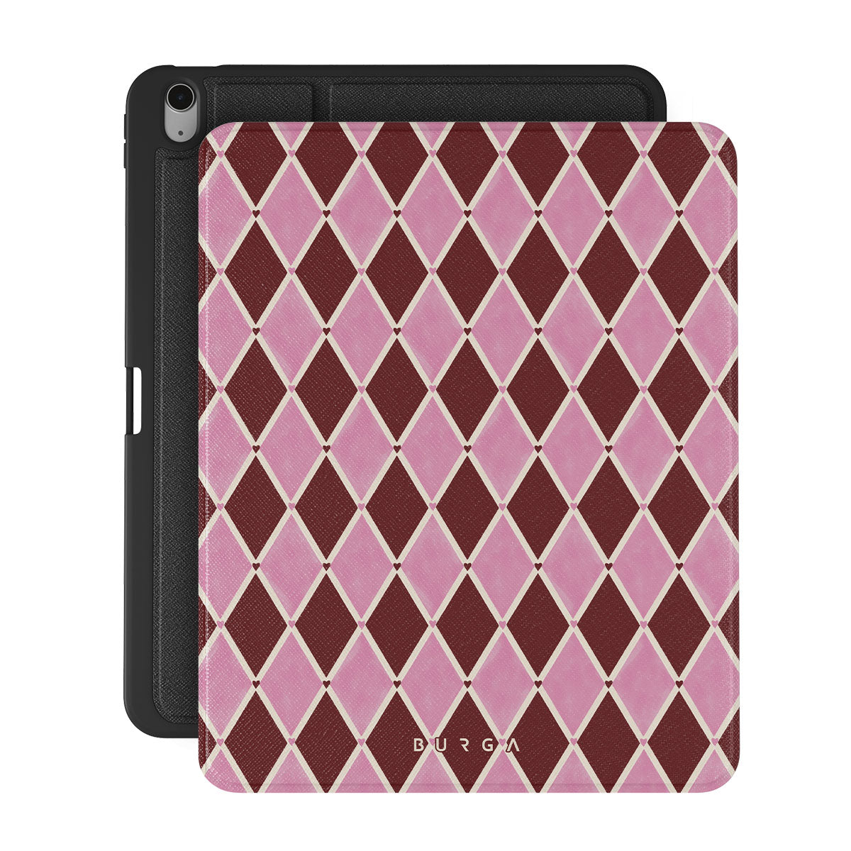 Dieses Design enthält: Harlekinmuster, rosa Rauten, tiefroter Hintergrund