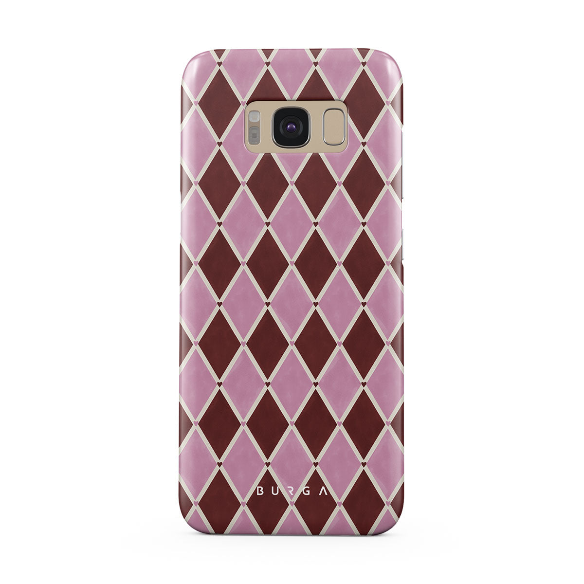 Dieses Design enthält: Harlekinmuster, rosa Rauten, tiefroter Hintergrund