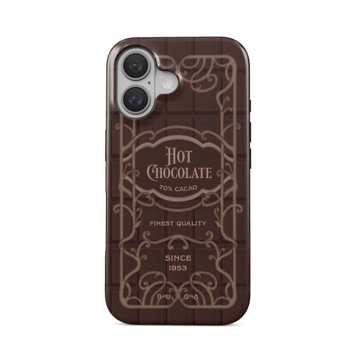 Dieses Design enthält: Heiße-Schokolade-Label, braunes Schokoladendesign, Retro-Verpackungsstil