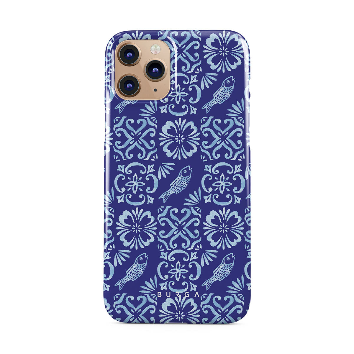 Dieses Design enthält: portugiesische Fliesenmuster, tiefe Blautöne, Blumenmuster, Blumen, Fische