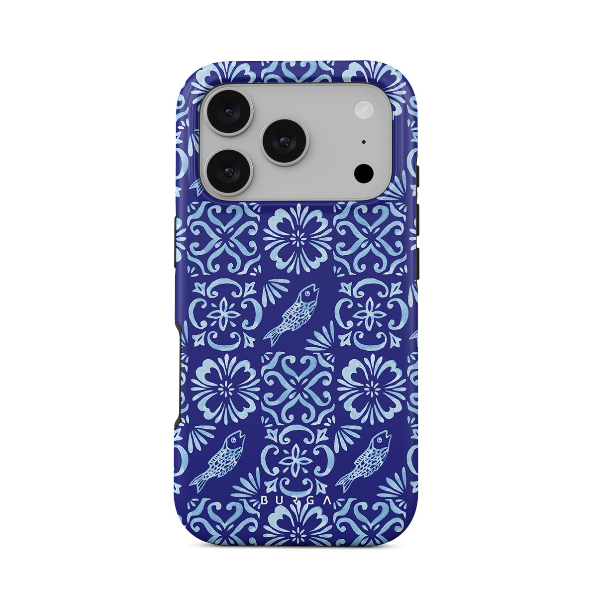 Dieses Design enthält: portugiesische Fliesenmuster, tiefe Blautöne, Blumenmuster, Blumen, Fische