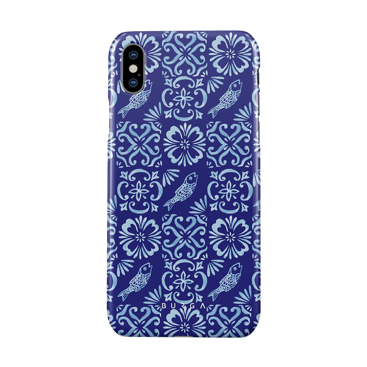 Dieses Design enthält: portugiesische Fliesenmuster, tiefe Blautöne, Blumenmuster, Blumen, Fische