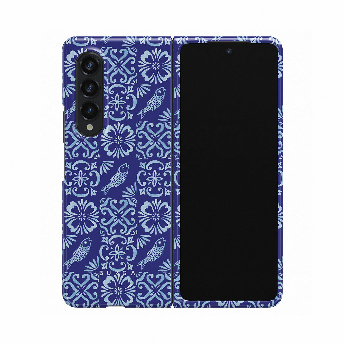 Dieses Design enthält: portugiesische Fliesenmuster, tiefe Blautöne, Blumenmuster, Blumen, Fische
