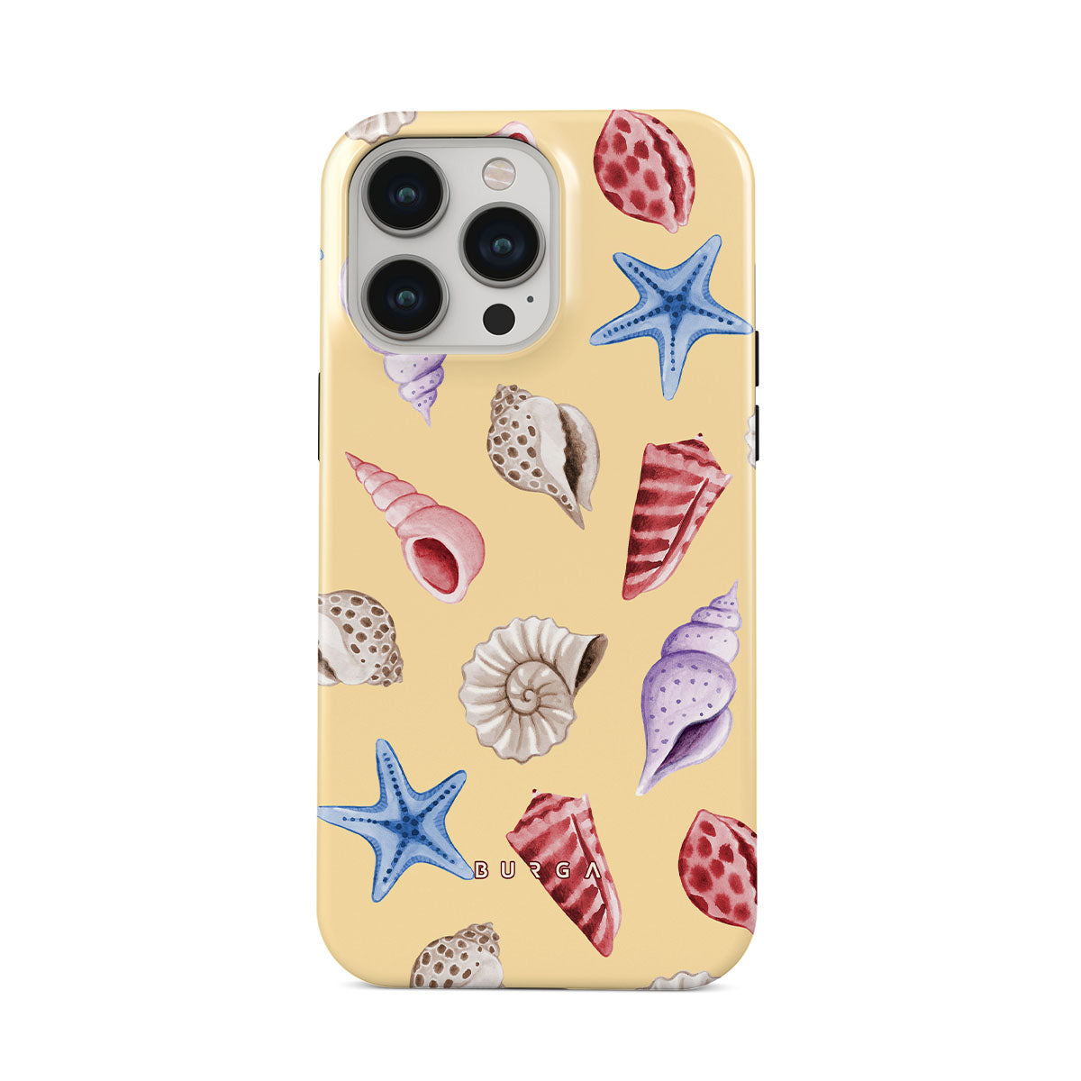 Dieses Design enthält: Muscheln, Seesterne, pastellgelber Hintergrund, Ozeanthema.