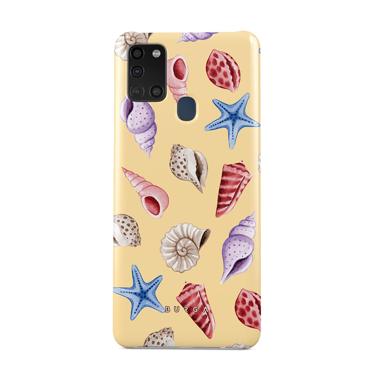 Dieses Design enthält: Muscheln, Seesterne, pastellgelber Hintergrund, Ozeanthema.
