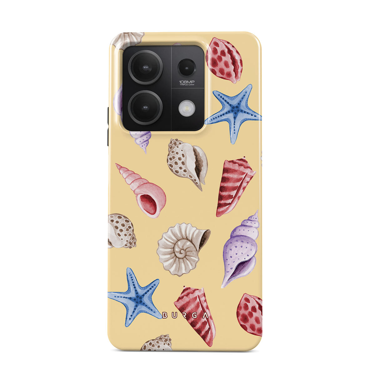 Dieses Design enthält: Muscheln, Seesterne, pastellgelber Hintergrund, Ozeanthema.