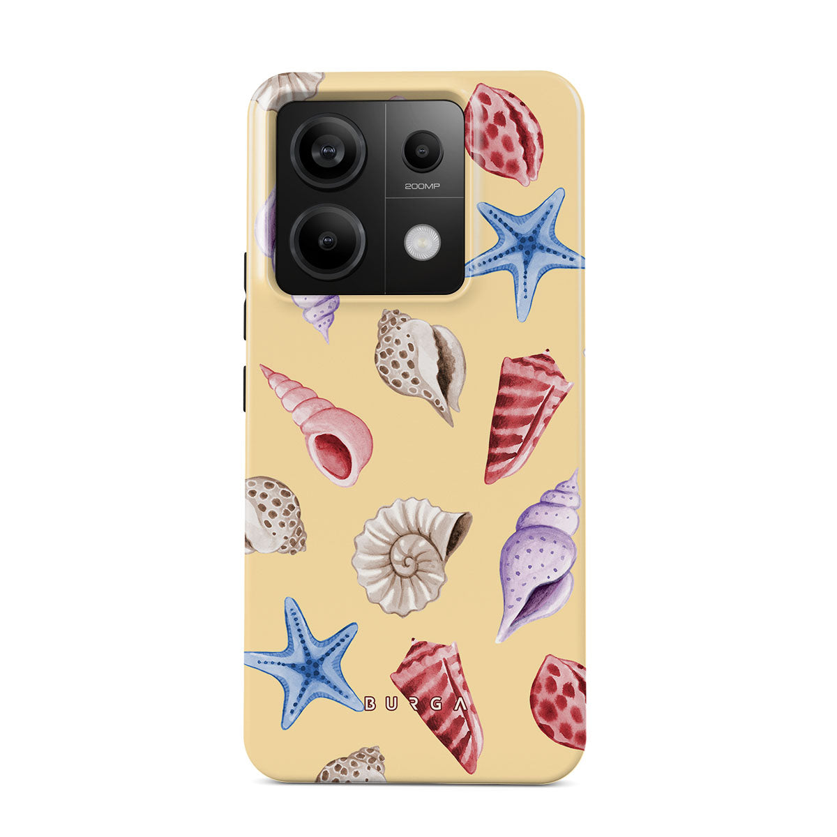 Dieses Design enthält: Muscheln, Seesterne, pastellgelber Hintergrund, Ozeanthema.