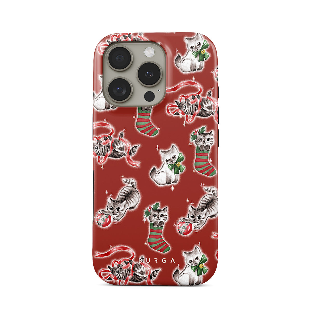 Dieses Design enthält: Katzen, Weihnachtssocken, Kätzchen, rot-grünes Muster, verspielte Katzen, Weihnachtsornamente