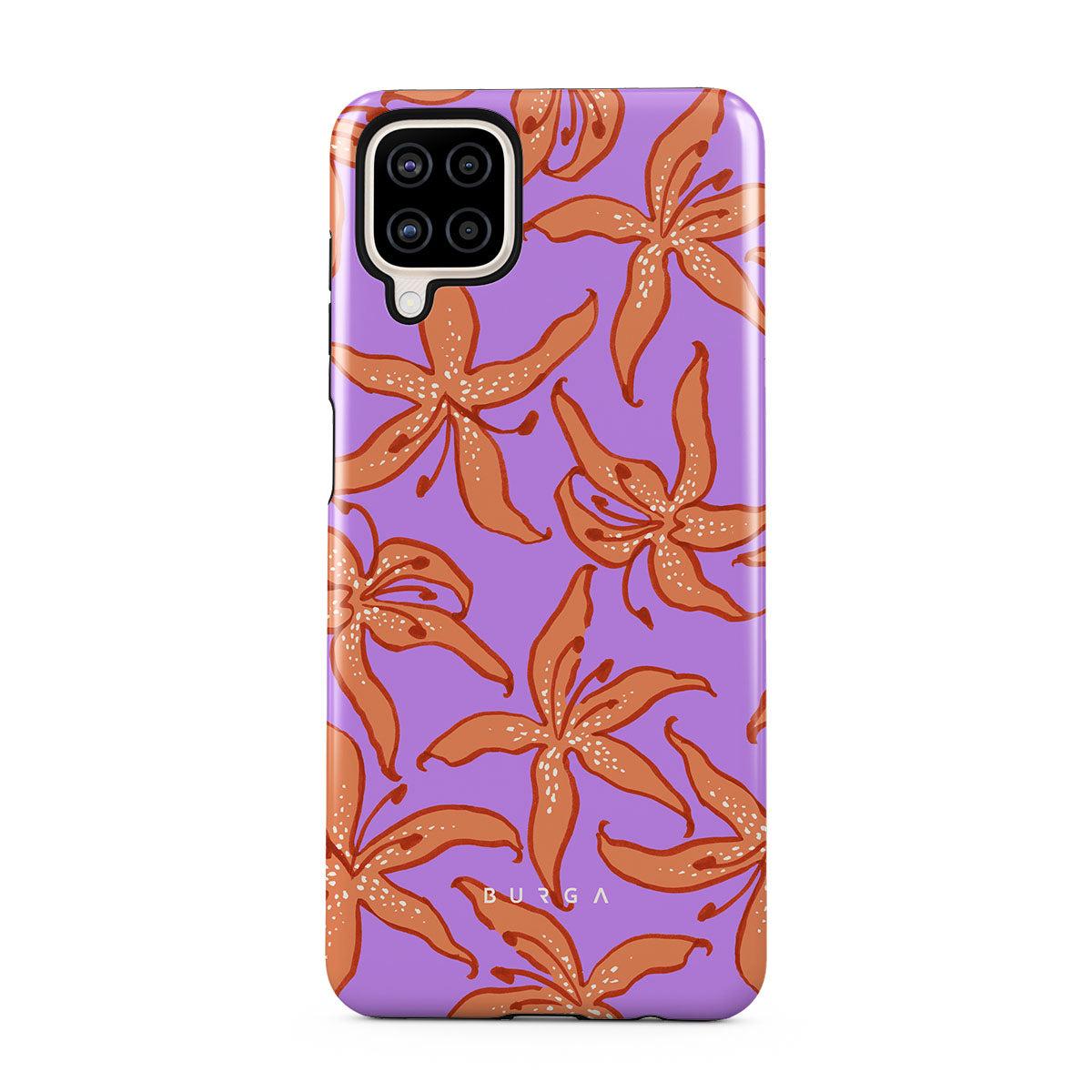 Dieses Design enthält: orange Lilien, lila Hintergrund.