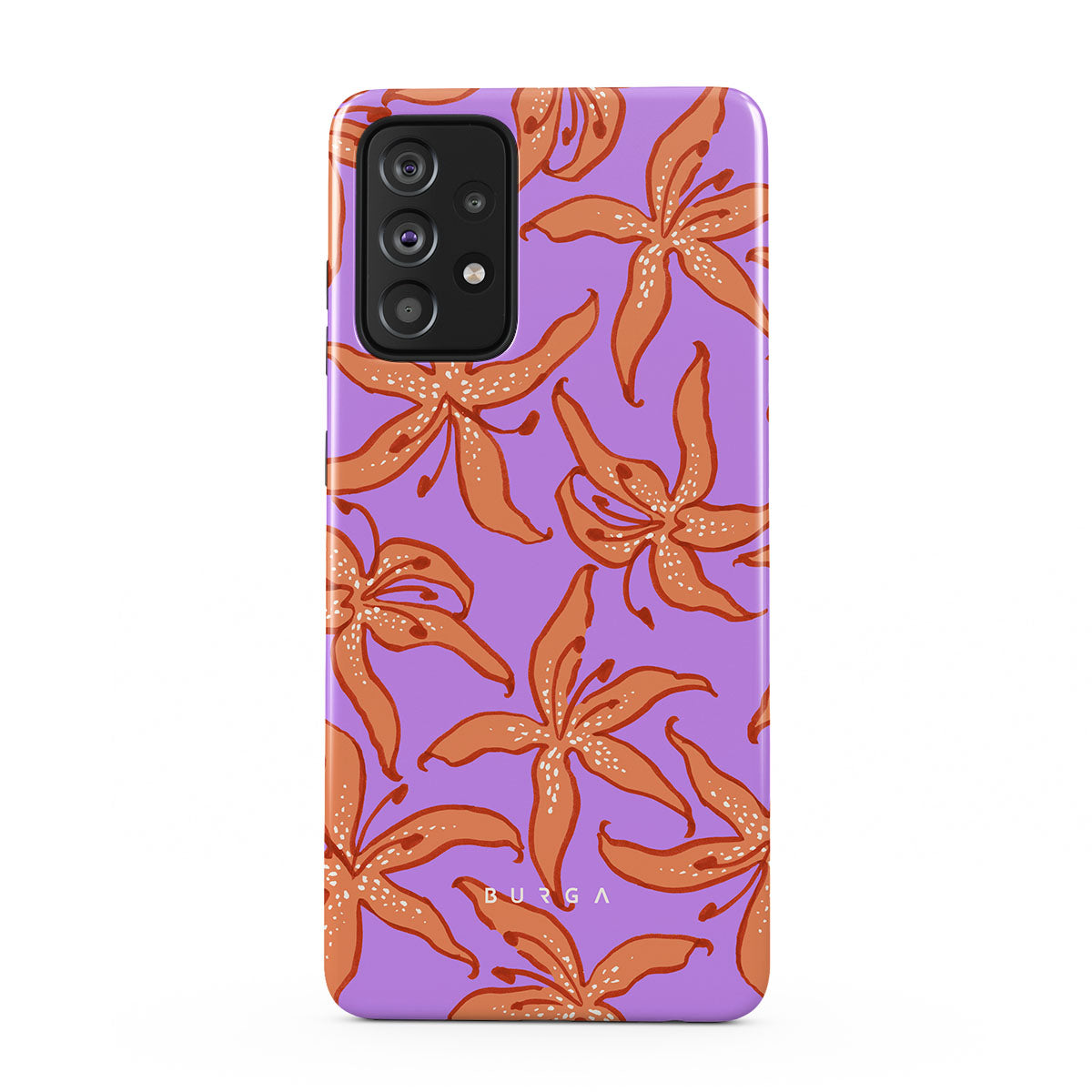 Dieses Design enthält: orange Lilien, lila Hintergrund.