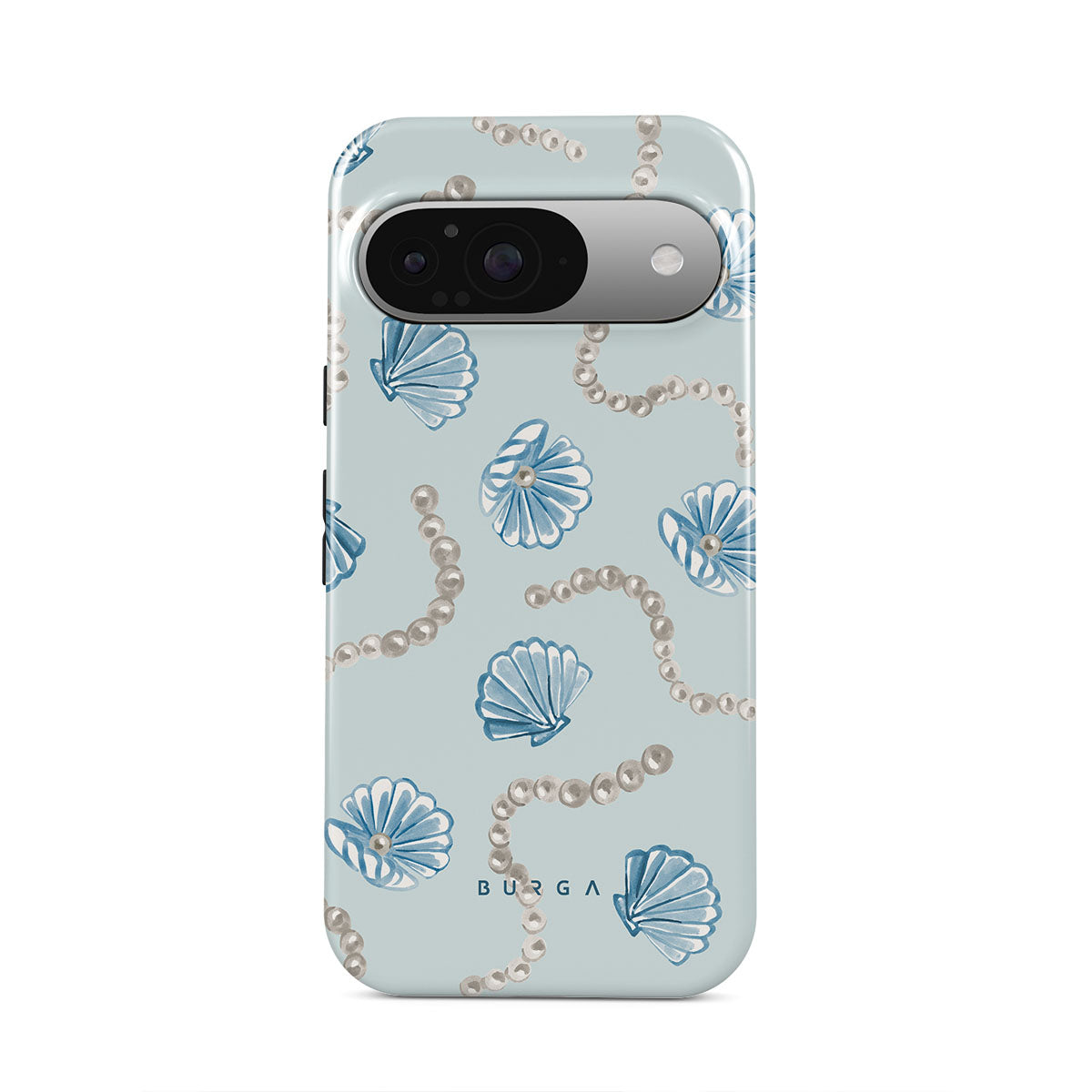 Dieses Design enthält: Perlen, Muscheln, hellblauer Hintergrund, Meereslemente.