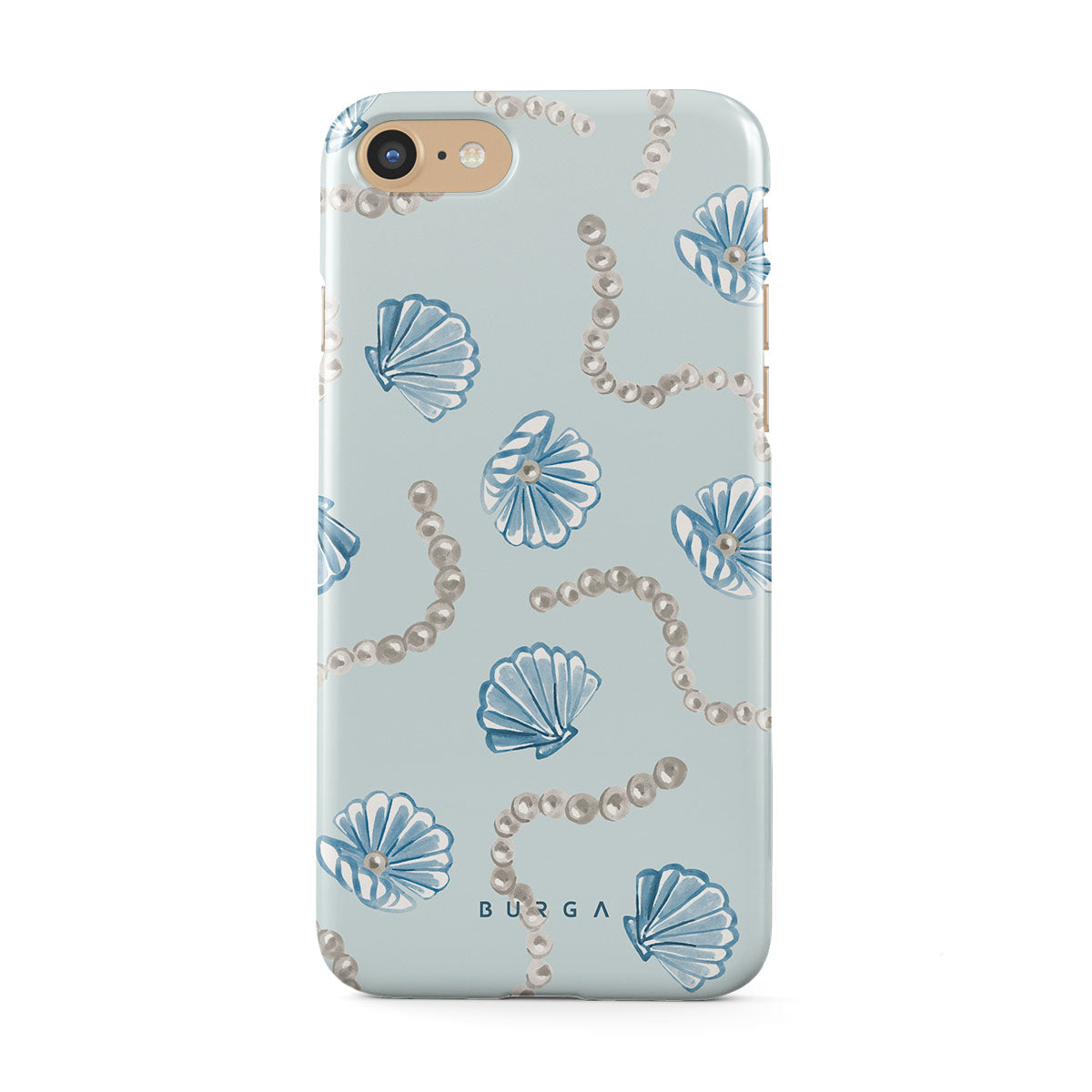 Dieses Design enthält: Perlen, Muscheln, hellblauer Hintergrund, Meereslemente.