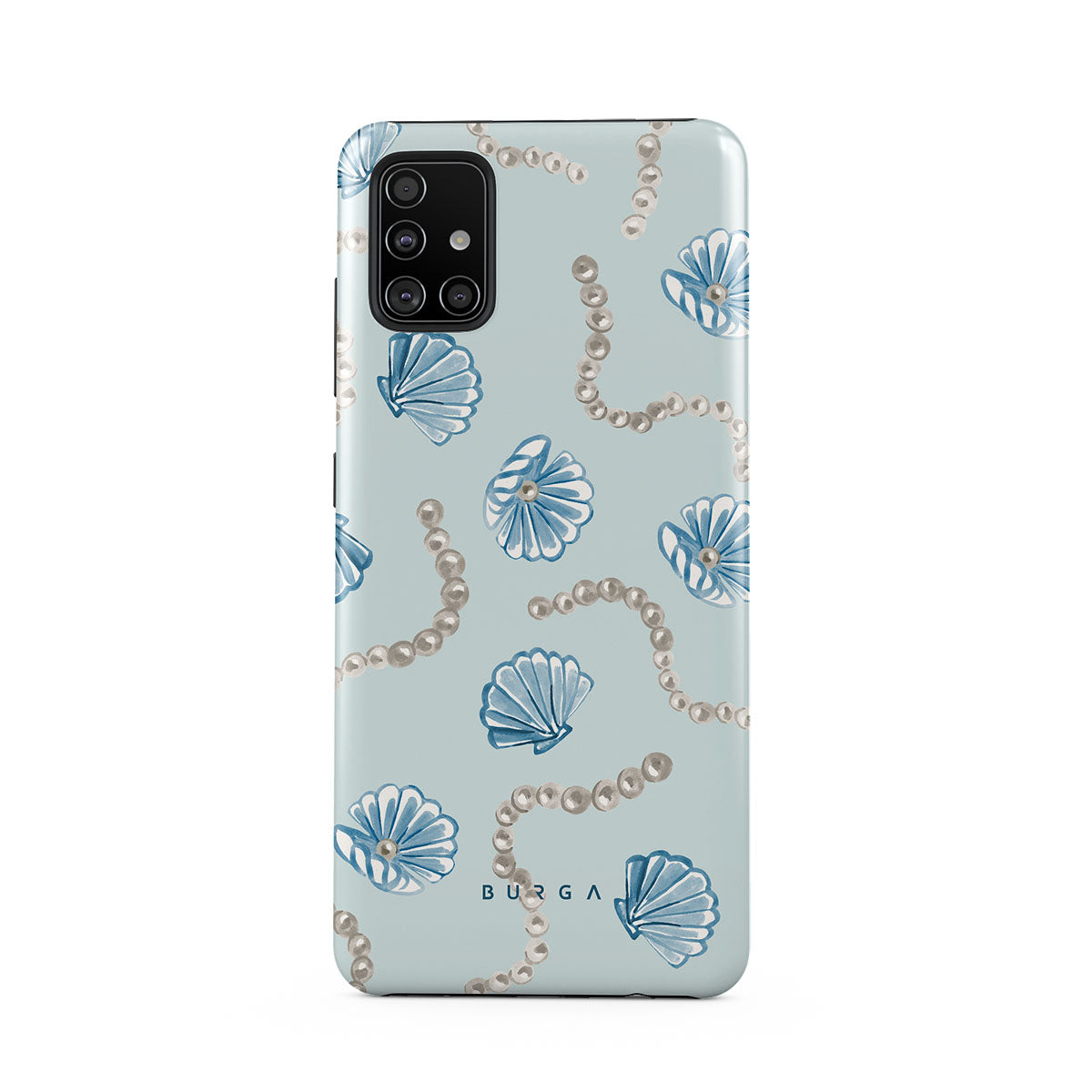 Dieses Design enthält: Perlen, Muscheln, hellblauer Hintergrund, Meereslemente.