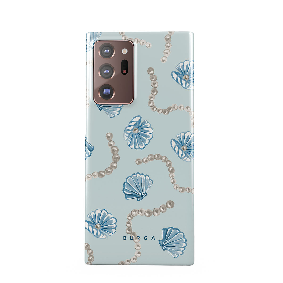 Dieses Design enthält: Perlen, Muscheln, hellblauer Hintergrund, Meereslemente.