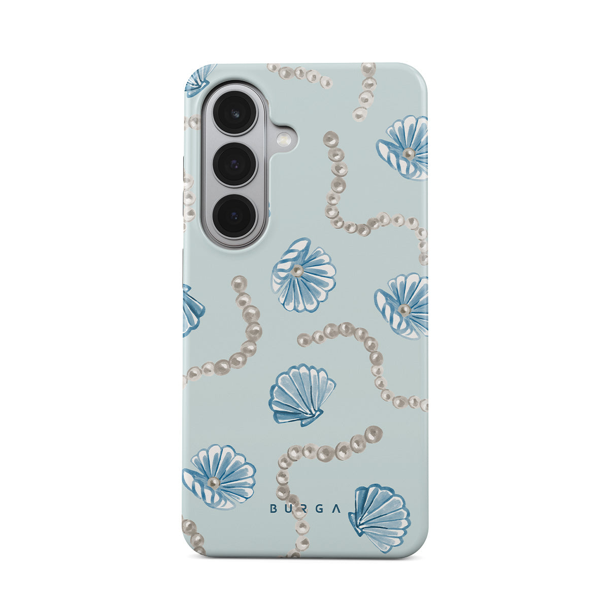 Dieses Design enthält: Perlen, Muscheln, hellblauer Hintergrund, Meereslemente.