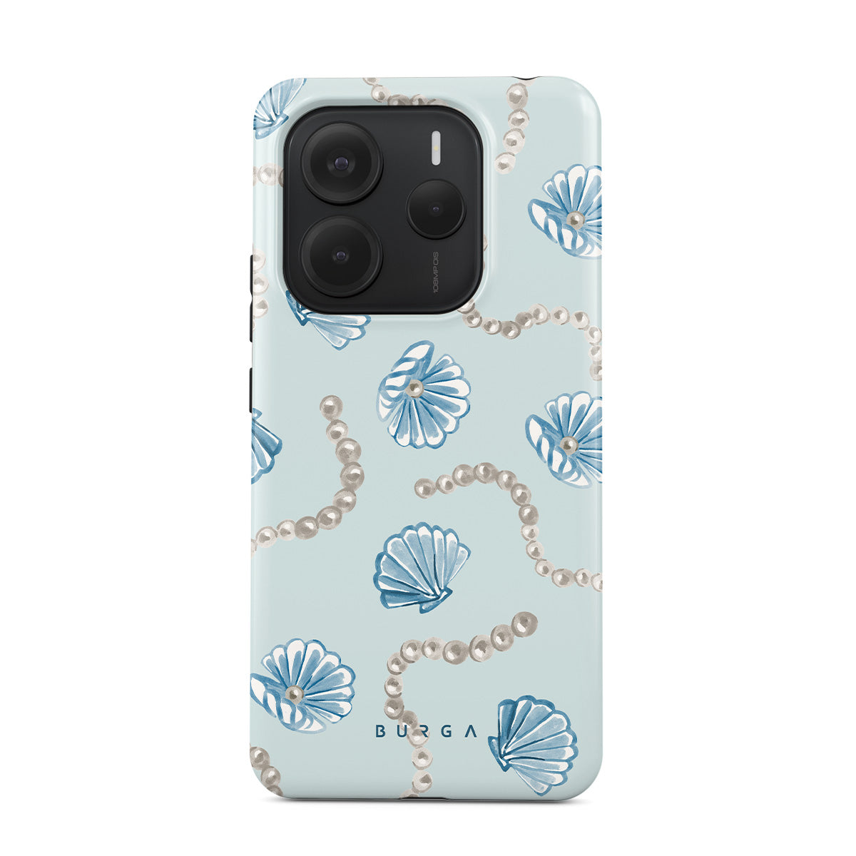 Dieses Design enthält: Perlen, Muscheln, hellblauer Hintergrund, Meereslemente.