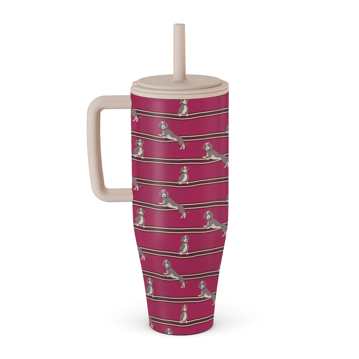Dieser 40 oz / 1,2 Liter Becher hält dein Getränk 12 Stunden heiß, den ganzen Tag kalt – und deine Tasche 100 % trocken, dank einem auslaufsicheren Strohhalmdeckel, der wirklich dicht hält. Er passt in deinen Auto-Getränkehalter, liegt mit seinem Griff perfekt in der Hand – und kommt in Farben, die du auf dein Outfit abstimmen willst.