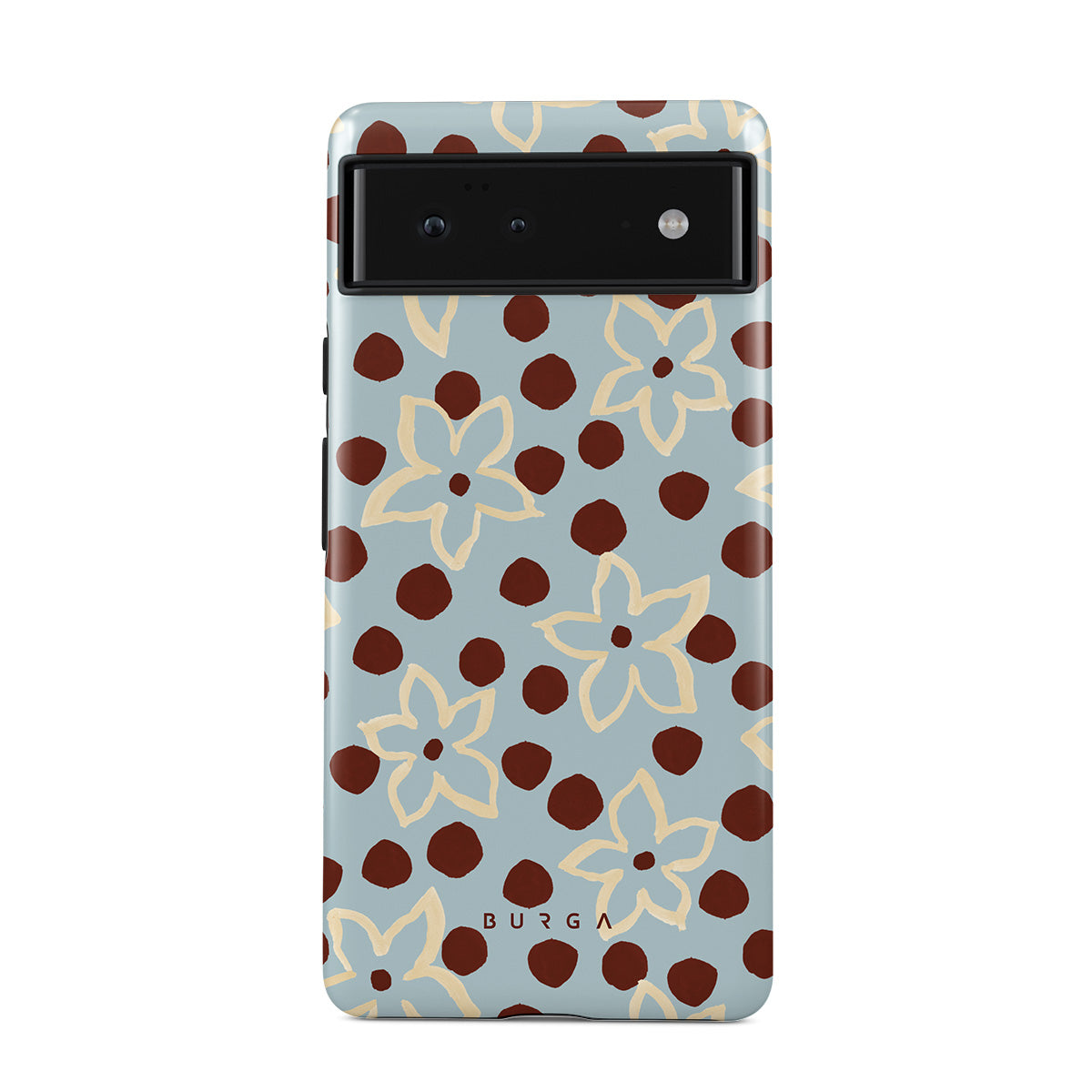 Dieses Design enthält: Blumen, gepunktetes Muster, hellblauer Hintergrund