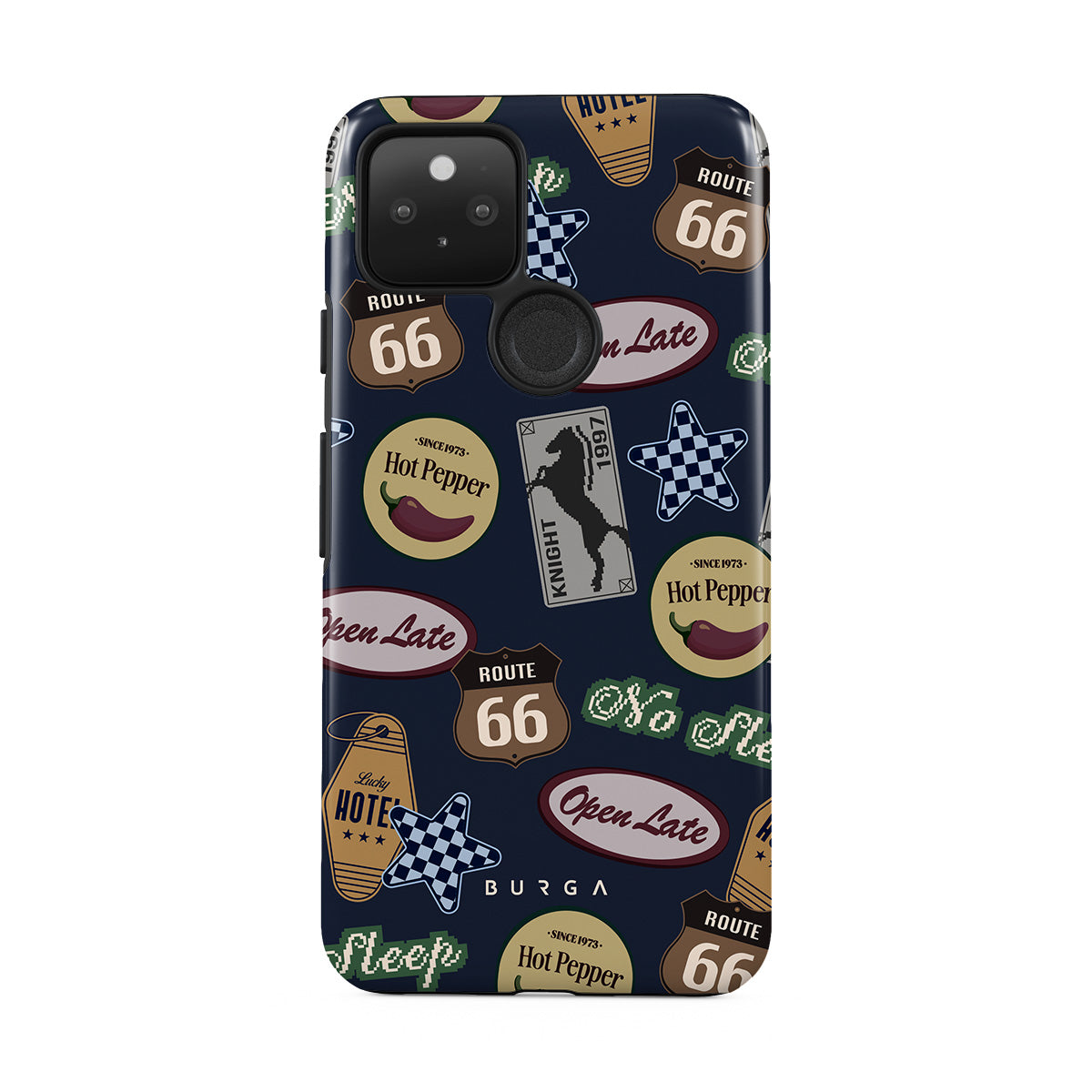Dieses Design enthält: Vintage-Schilder, Retro-Muster, Roadtrip-Thema