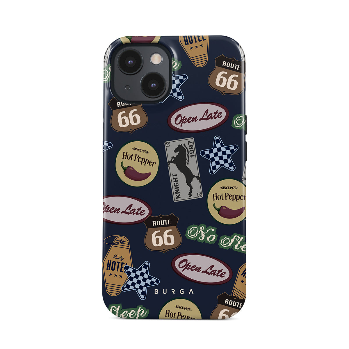 Dieses Design enthält: Vintage-Schilder, Retro-Muster, Roadtrip-Thema