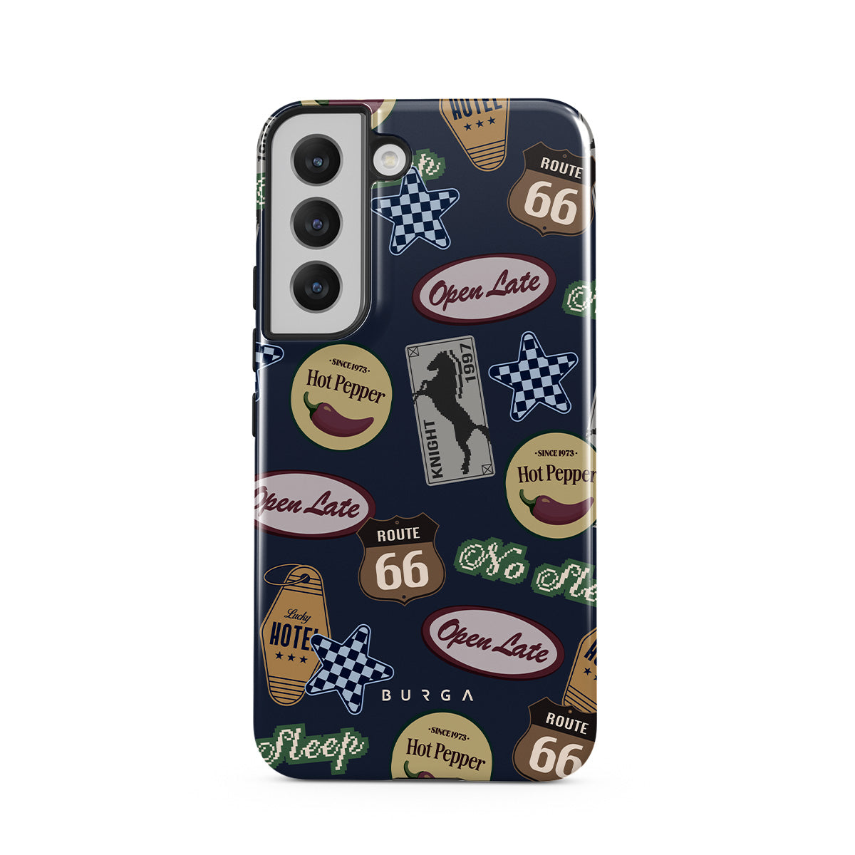 Dieses Design enthält: Vintage-Schilder, Retro-Muster, Roadtrip-Thema