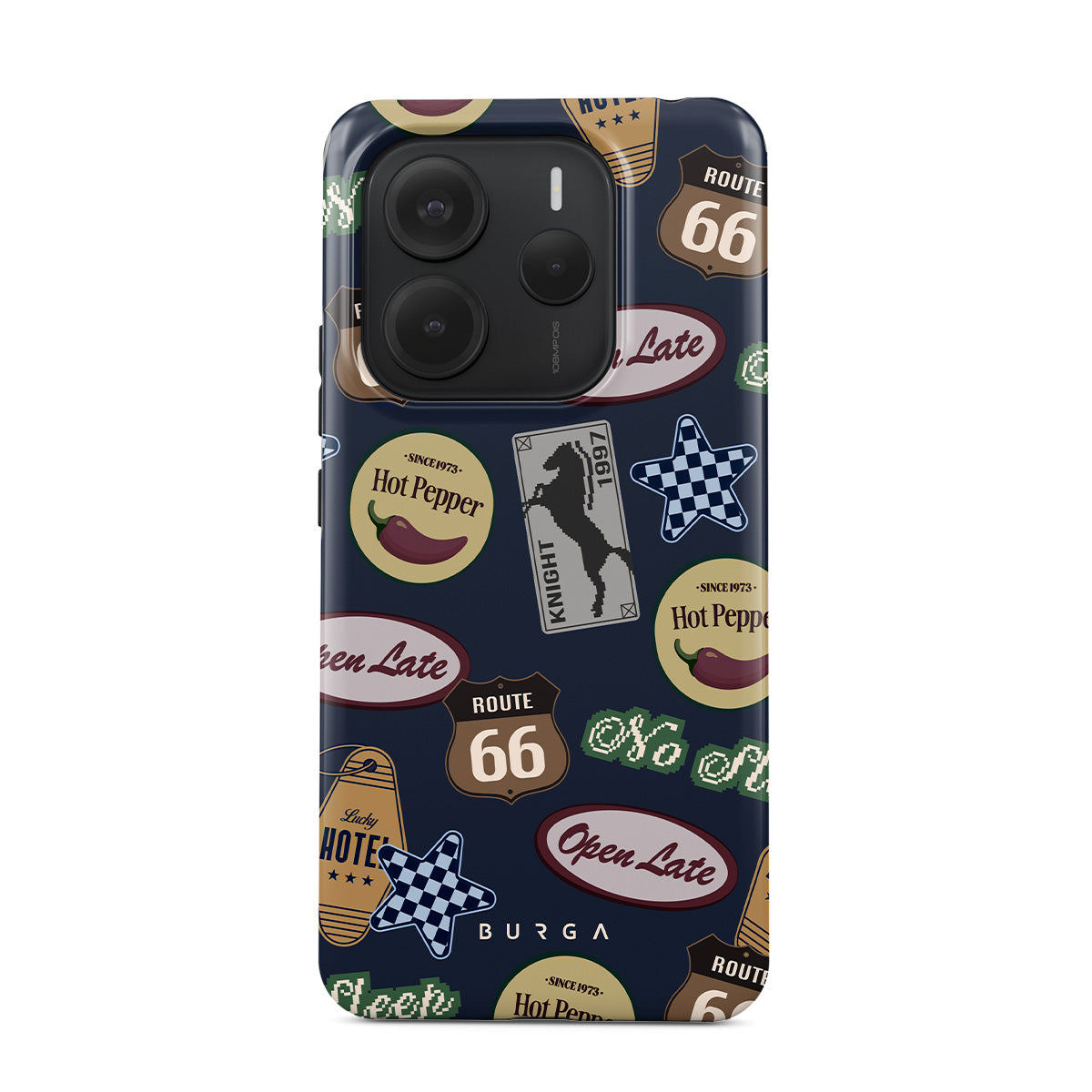 Dieses Design enthält: Vintage-Schilder, Retro-Muster, Roadtrip-Thema