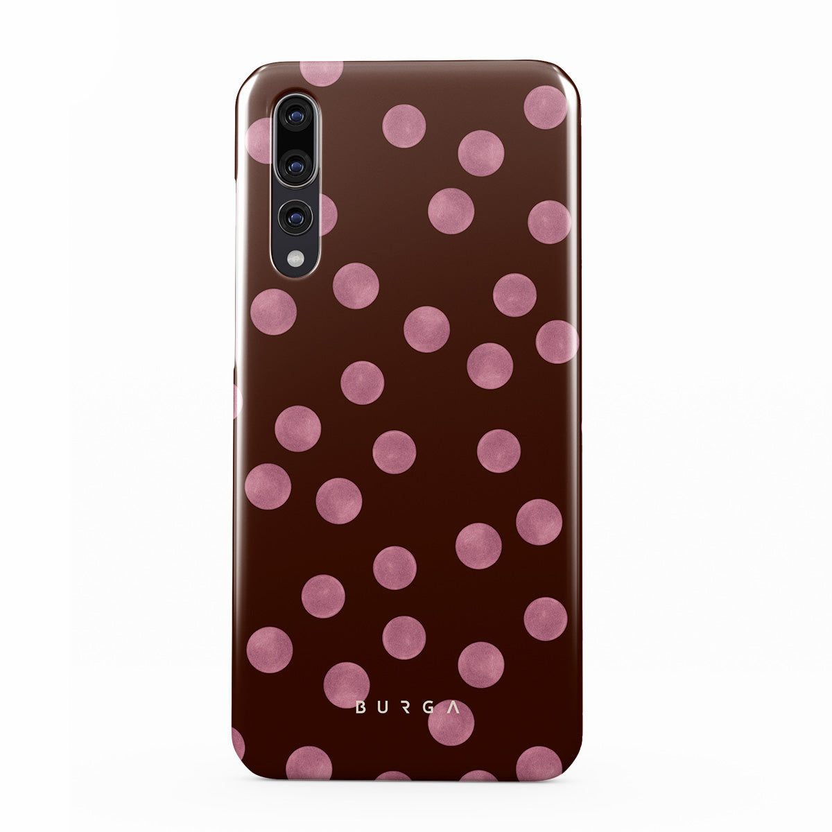 Dieses Design enthält: rosa Polka Dots, brauner Hintergrund, Punktmuster